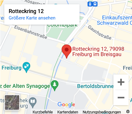 Eingang in der Gasse an der Ecke Rotteckring 12 zwischen VHS und Café